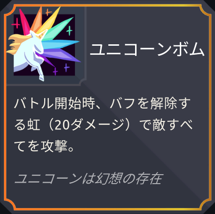 バトル開始時、バフを解除する虹(20ダメージ)で敵すべてを攻撃。